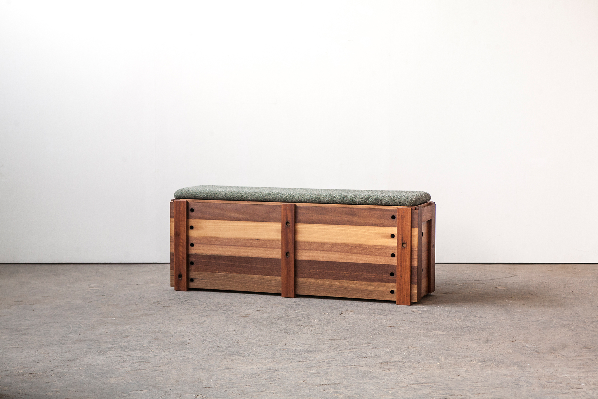 材質:(箱體)退役木橫擔、(坐墊)再生泡棉、100%回收PP纖維布塗佈:德國AURO天然護木油