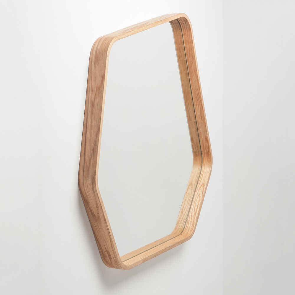尺寸:77 x 82 x 5.5 cm材質:白橡木、3mm防蝕鏡面塗裝:德國天然護木油重量:約 9.5 kg適用場所:玄關、臥室、乾濕分離且通風良好的衛浴、任何想以鏡面或多邊形妝點的堅固牆面