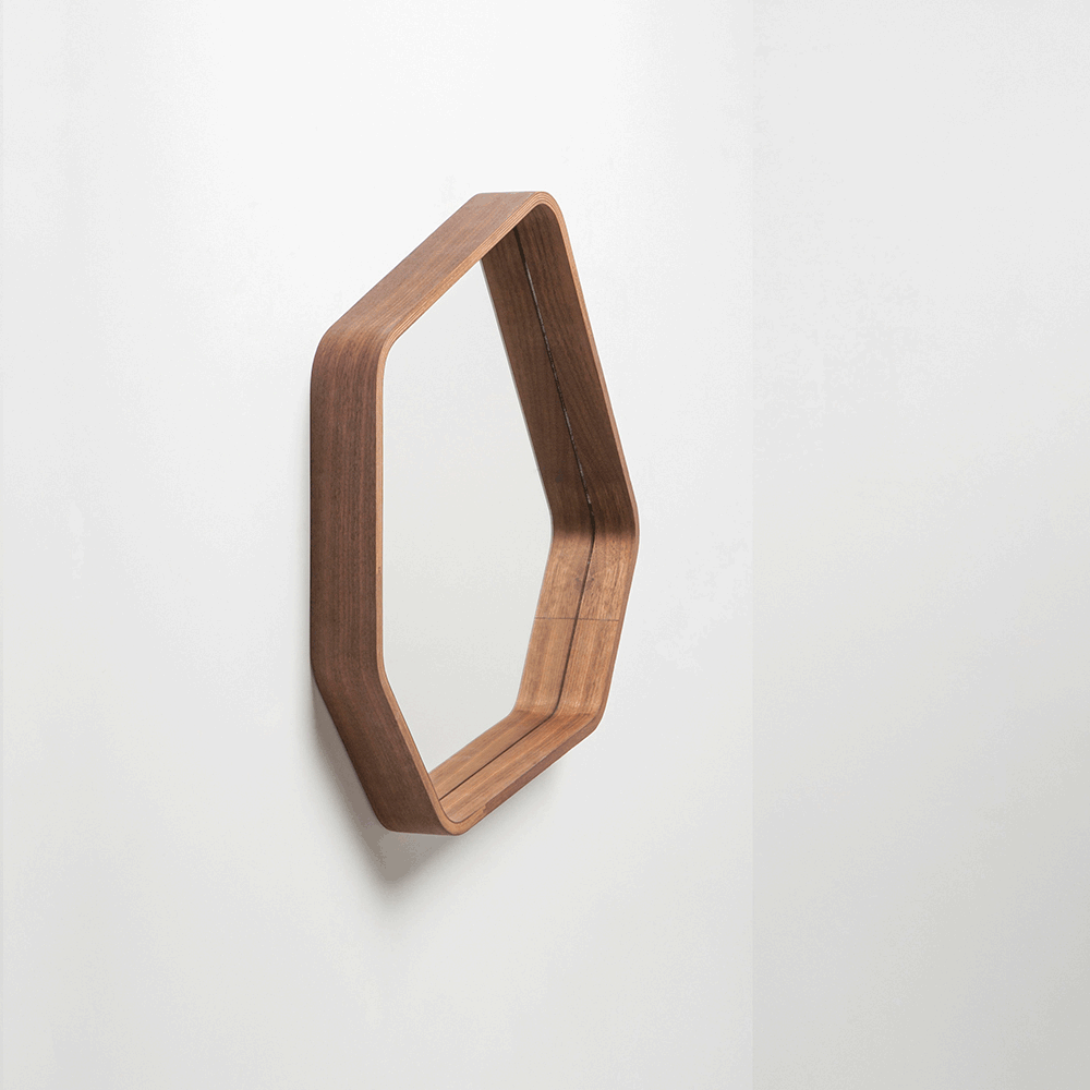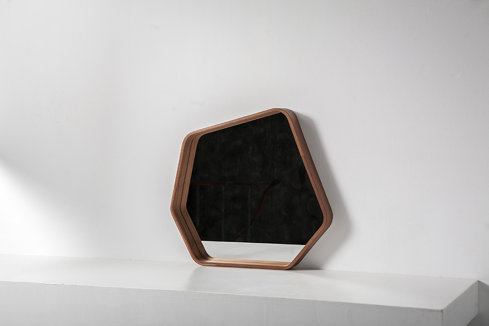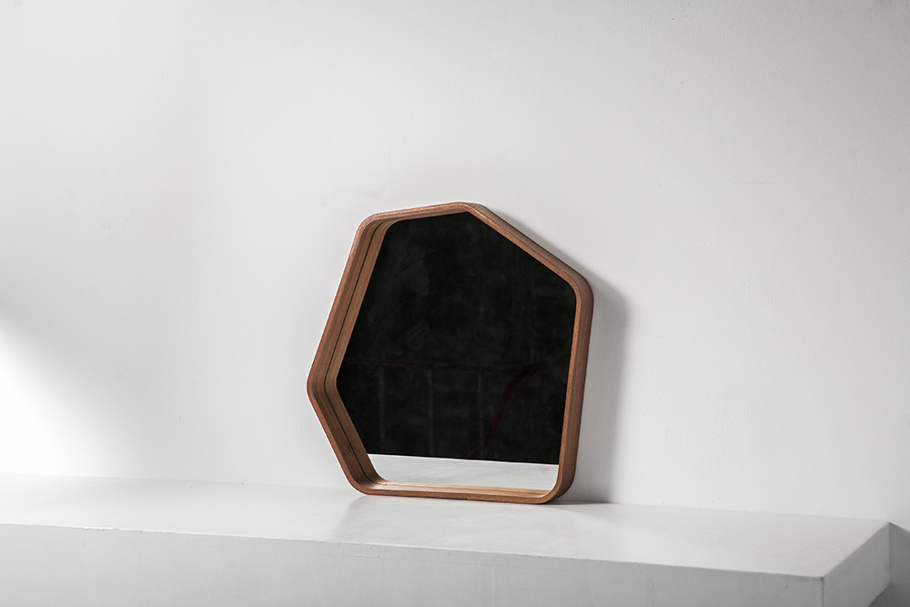 尺寸:49 x 49 x 5.5 cm材質:胡桃木、3mm防蝕鏡面塗裝:德國天然護木油重量:約 3.5 kg適用場所:玄關、臥室、乾濕分離且通風良好的衛浴、任何想以鏡面或多邊形妝點的堅固牆面