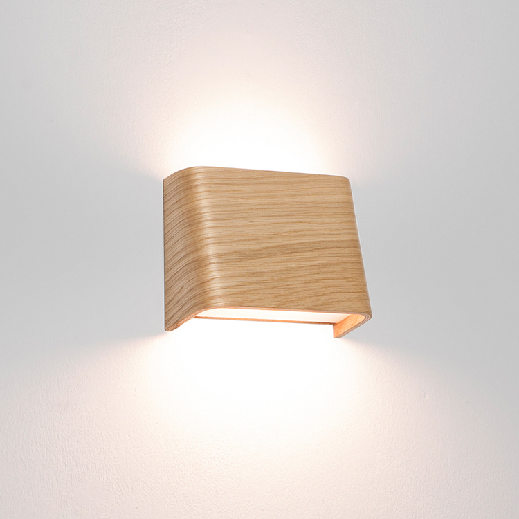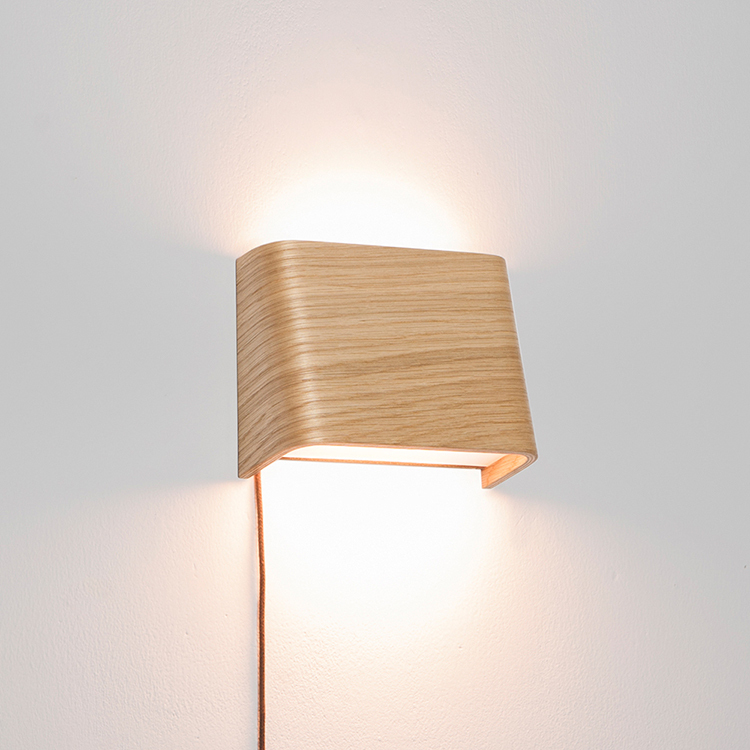 簡單的曲木藉由不同造型,改變燈光照射的方向。上下兩面光源設計,可用於床頭、沙發、玄關、廊道等空間。