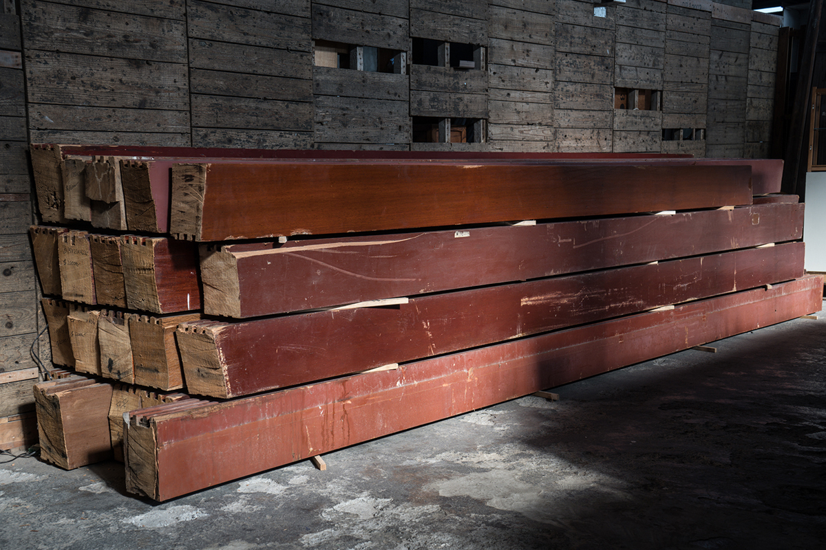 老屋拆除時保留下來的門斗,成為舊木再生系列產品的材料來源。