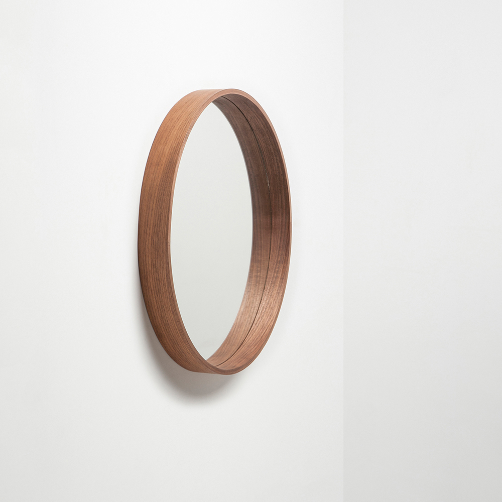 尺寸:ø50 x 5.5 cm材質:胡桃木、3mm防蝕鏡面塗裝:德國天然護木油重量:約 3 kg適用場所:玄關、臥室、乾濕分離且通風良好的衛浴、任何想以鏡面或圓形妝點的堅固牆面